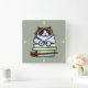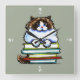 A Ragdoll/Ragamuffin cat perched on a stack of books depicted in this original illustration rendered using ink and coloured pencils. Art by Andie, creator and illustrator of Off-Leash Art™.