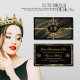 The design features a noble crown with shimmering, ornate golden decorative elements on a wavy, patterned, curved brown and plain black background.