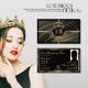 The design features a noble crown with shimmering, ornate golden decorative elements on a wavy, patterned, curved brown and plain black background.