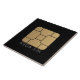 Now you can have a Sim card to wear on your body thanks to this new mega format. Because nano format is for dwarves. The design is beautiful brushed gold on a black background. SIM stand for subscriber identification module and whenever you're changing mobile plans for your cell phone you probably get a new SIM card. Simply stick the SIM in your smart phone, for instance an iPhone from Apple, and you are good to go. The contact points of a SIM card and the symbol for SIM are ubiquitous. A good idea to make it more so with this vector drawing. The texture is brushed gold. We all know the standard, micro and nano format of a SIM, so why not a mega format for humans. Humans are smart too!