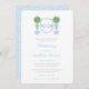 This classic Baptism or Christening invitation design features a simple monogram crest flanked on either side by a handpainted topiary ball in a ginger jar planter adorned with a blue ribbon bow. Watercolor elements were painted by me onto 100% cotton paper and scanned into digital form. The crest shape is by another artist.