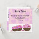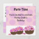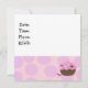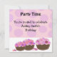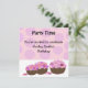 A cute design featuring pink and purple smartie covered chocolate cupcakes. A soft pink background with big light purple dots. Customise with all of your party information as desired.