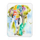 This watercolor print features a colourful elephant in eyeglasses | By Jennifer Goldberger