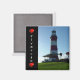 A souvenir heart Plymouth fridge magnet to remind you of the fantastic time you had in Plymouth. Two hearts frame the word Plymouth, written vertically on a black background. The picture shows the iconic Smeaton's Tower - the single most recognized landmark in Devon. Now standing on The Hoe, it used to be a lighthouse out at sea.