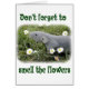 Blue dumbo doe smelling the daisies on a blank card.