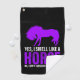 The golf towel exceeded my expectations! My husband actually approved of it! He liked the picture quality, thickness and overall usefulness of the golf towel I ordered to commemorate his lowest ever golf score. He liked it so well that I ordered 8 more towels with photos of his home golf course. Each one of the eight has the name of one of his golf group members. I will give them as party favors at my husband's 70th birthday party later this year. The different names were easy to add because the Zazzle template is so very easy to use. The colors were bright and authentic in all 9 of the towels that I made. The one of the 9 that I ordered has come out of the wash and line dry looking great.