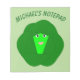 This awesome notepad features a cute cartoon of a green brussel sprout with big eyes and a smiley mouth. It has dark green leaves around the outside and a paler green inside.There is customisable text at the top of the notepad allowing you to personalise it for yourself or turn it into a lovely gift for someone else.