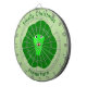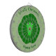 This awesome dart board features a cute cartoon of a green brussel sprout with big eyes and a smile. It has dark green leaves around the outside and a paler green inside.