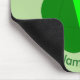 This mousepad features a cute cartoon of a green brussel sprout with big eyes and a smiley mouth. It has dark green leaves around the outside and a paler green inside.