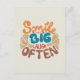 Send a burst of happiness with our delightful postcard featuring the uplifting message "Smile Big, Laugh Often." This charming design is sure to bring joy to anyone's day. Share positive vibes and brighten someone's world with this heartwarming greeting. Perfect for spreading smiles and laughter across the miles!