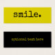 A yellow and black 'smile' card to remind you or someone else. Text on front can be personalised. Back of card has space to add optional text.