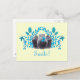 A postcard with with a cute watercolor design for shutterbugs. A black camera surrounded by azure blue leaves and butterflies in a pretty decorative arrangement. Set on a pastel yellow background. The word Smile! underneath the image. Easily customise, personalise or remove the text if you wish.