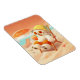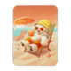 Smile Dog is in full vacation mode—relaxing in orange shorts, sipping a beach drink, and soaking up the sun. Perfect for summer vibes and chill spaces.