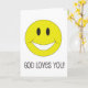 This inspirational, happy and Christian greeting card features a smile face with "God Loves You!" text.