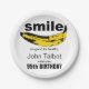 Customisable humourous 95th Birthday Paper plate with banana and quote. Matching birthday paper napkin and paper cup, birthday save the date, invitation, guest book and other birthday gifts.