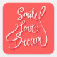 Card with hand drawn typography design element for greeting cards posters and print. Smile love dream with little hearts clouds and smile on red background eps 10 | Bigstock® - All Rights Reserved.
