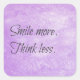Smile more. Think less, motivational and inspirational stickers on a purple paint background.