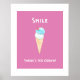 Smile There's Ice Cream! Motivating and inspiring quote with a pink background, and a yummy ice cream. Ice cream, juicy, colourful watercolor illustrations, and sweet decorations.