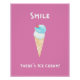 Smile There's Ice Cream! Motivating and inspiring quote with a pink background, and a yummy ice cream.