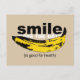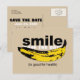 Graphic art: Banana orientated to form a smile + small text between brackets: (is good for health). Perfect for anyone who keeps smiling year after year. Design on invitation postcard with texts for 60th Birthday Save the Date to customise. You can easily change text (font, colour, size and position) by clicking the customise button. Matching birthday invitation, birthday guest books (hard cover and spiral notebook), birthday paper napkin, paper plate and more...