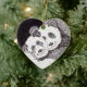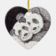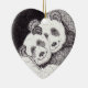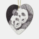 Two cute panda bears hugging in a tree. In the foreground is a heart shaped slice of wood. The original is a 5" x 7" ink drawing on 140 lb watercolor paper . The back of this ornament can be personalised with names of your choice.