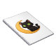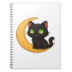 Smiling Black Cat with Glowing Green Eyes Sitting Notebook