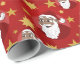 Christmas wrapping paper with an illustration of happy smiling African American Santa Claus, with editable text template for your name or message, Christmas holidays design with a seamless red background with stars