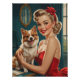 Smiling Blonde Pin-Up in red Dress with Cute Dog Poster