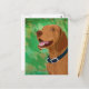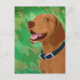 Smiling Brown Vizsla on Green Background Postcard