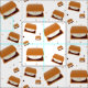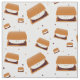 Fabric with a pattern of smiling s'mores on a white background. Choose the fabric type that is right for your project, select as many yards as you need, and then add this fabric to your cart.