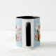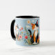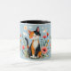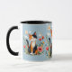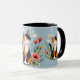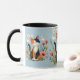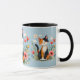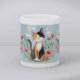 Smiling Calico Cat in Blooming Garden Blue Mug