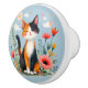 Smiling Calico Cat in Blooming Garden Ceramic Knob