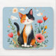 Smiling Calico Cat in Blooming Garden Mouse Pad