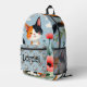 Smiling Calico Cat in Blooming Garden Printed Backpack