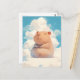 Smiling Capybara Sitting on Soft White Cloud Postcard