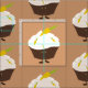 Fabric with a smiling cupcake design (background colour is changeable)
