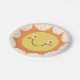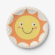 Smiling yellow gold cartoon sun face for a fun children's birthday or outdoor garden party with white polka dots over an antique goldenrod, off-white background, or change the background to any colour when you "click to customise further".