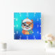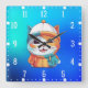 Smiling Cat Wearing Hat Clipart Square Wall Clock