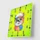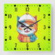 Smiling Cat Wearing Hat Clipart Square Wall Clock