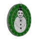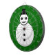 This awesome dart board features a smiling white Christmas snowman with black buttons and a top hat. He looks like one cool gent and would love to help you spread the joy of Christmas this year. The background is a festive shade of green.