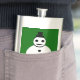This awesome flask features a smiling white Christmas snowman with black buttons and a top hat. He looks like one cool gent and would love to help you spread the joy of Christmas this year. The background is a festive shade of green.