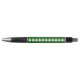 This awesome pen features a smiling white Christmas snowman with black buttons and a top hat. He looks like one cool gent and would love to help you spread the joy of Christmas this year. The background is a festive shade of green.