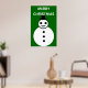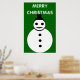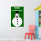 This fun festive poster features a smiling white Christmas snowman with black buttons and a top hat. He looks like one cool gent and would love to help you spread the joy of Christmas this year. The background is a festive shade of green and there is a white border and white snowy text that reads "Merry Christmas". The poster is available in several sizes, making it an ideal decoration for a family living room or a large hall.