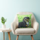 Smiling Dachshund Forest Green Throw Pillow