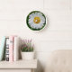Cute photo of a smiling daisy, is featured on this round wall clock. Clock has white wooden frame look, uses one AA battery, not included. Use yourself or give as a gift for housewarmings, weddings and more!