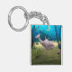 Cute smiling dolphin on a blue fantasy ocean background. Perfect gift for anyone who loves these amazing animals