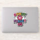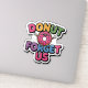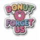 This delightful sticker features a cheerful, smiling doughnut character with colourful sprinkles and little arms raised in excitement. Below it, the playful pun “Doughnut Forget Us” stands out in bold, fun lettering, making it a sweet and humourous reminder of cherished friendships and good times. Bursting with bright colours and good vibes, this design is perfect for sending off a friend, marking a fun memory, or simply spreading joy with a sprinkle of love.