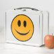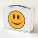 This design features an emoji-style image of a smiling face. These sorts of faces are often seen in smartphone apps.
