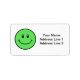 Smiling happy face address labels in green.