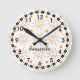 Teach the youngsters how to tell time with this whimsical design featuring a hand drawn sunshine pattern over a white background. The clock face includes large hour numbers and small minute numbers along the outer edge. Customise the name, remove the text or click customise to select a font style, size, and colour you like.
